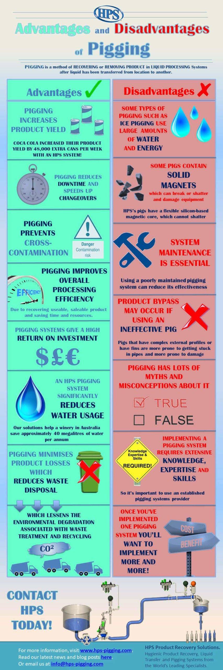 Considering implementing a pigging system? Here’s our latest infographic featuring the advantages and disadvantages of pigging technology.
